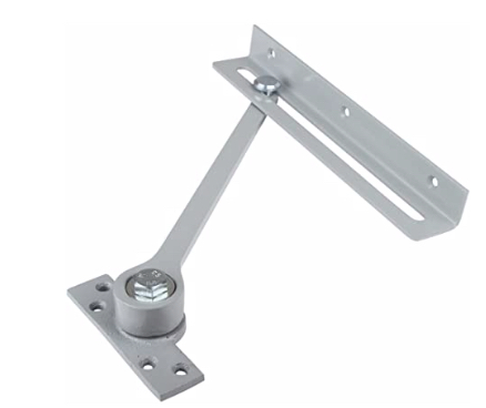 Heavy duty door limiting stay. By turning the nut on the pivoting point, the friction can be adjusted from zero friction to highly limiting friction. These items are fitted to doors where there is a possibility of the door being blown open by wind or levered against a wall when opening, thus causing irrepairable damage to the door and frame.