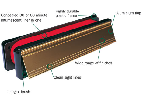 Norseal advantage fire rated letterplate with sprung plate. The advantage letter plate is rated to 60 minutes fire rating and suitable for domestic and commercial applications. The frame is black plastic and the plate is an alloy based plated finish which is finished with excellence. You will require a tube of intumescent mastic to install this product, as per the manufacturers guidelines.