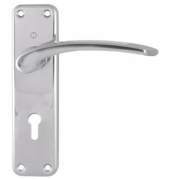 Hoppe Ibiza lever on backplate. An exceptional lever that meets the demands of both the domestic and commercial markets. This lever is available in satin annodised, polished chrome and polished brass, and available in latch, lever key and bathroom (with a thumbturn) backplate profiles.