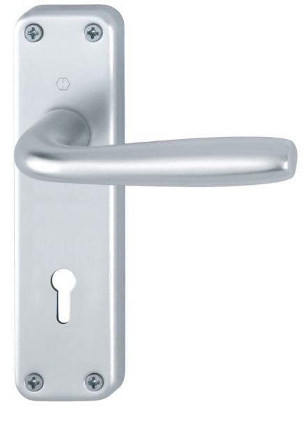 Hoppe Maribor lever on backplate. An exceptional lever that meets the demands of both the domestic and commercial markets. This lever is available in satin annodised, polished chrome and polished brass, and available in latch, lever key and bathroom (with a thumbturn) backplate profiles.