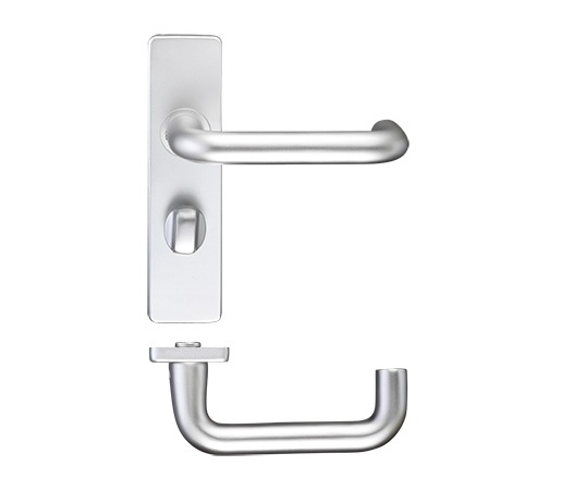 Zoo hardware return to door lever on backplate, finished in satin annodised aluminium. This lever is suitable for commercial use and is manufactured for wet-room and external areas. The lever design ensures disabled discrimination act compliance and looks very impressive due to the size of the back plate. The lever is available in 19mm and 22mm diameters and very competively priced against it's rivals. This lever is commonly fitted to public buildings, schools and commercial buildings due to it's high durability and DDA compliant design. The lever on backplate can be bolted through the door as well as face fixed with screws. This aluminium lever on backplate has achieved certification to be used on fire doors up to DF60. The backplate is also available in profiles of latch (plain), oval cylinder, euro cylinder, lever lock and bathroom furniture (57mm centres).